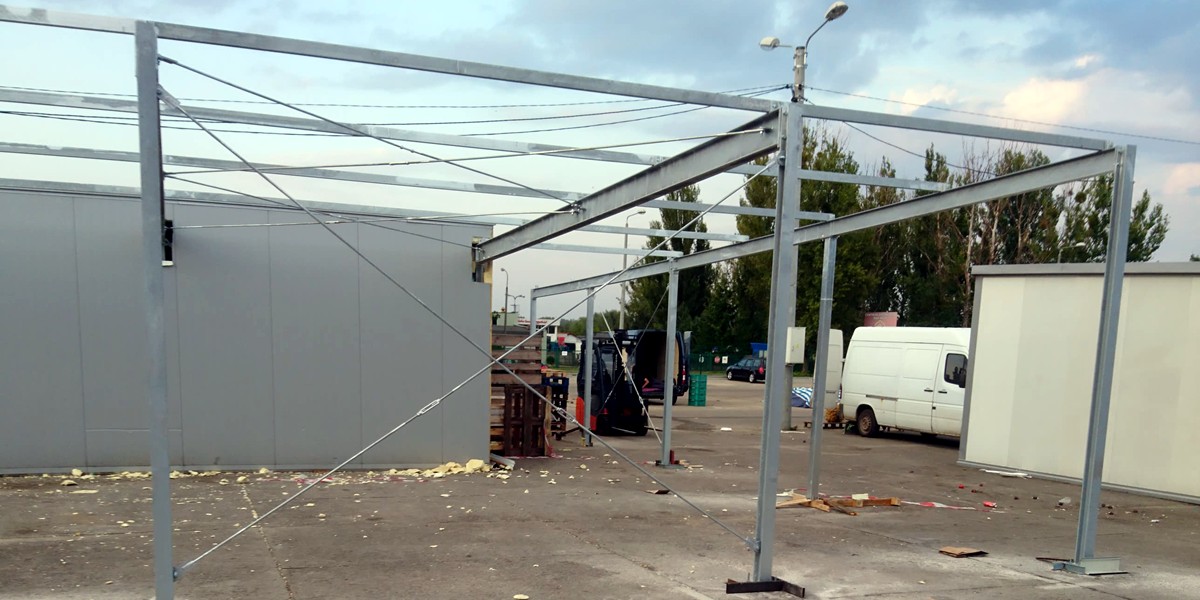 Hala posiada ocynkowaną konstrukcję oraz pokrycie dachowe, które skutecznie zabezpiecza wnętrze obiektu.