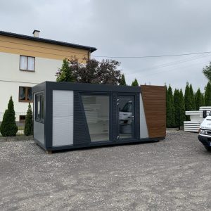 Na płycie podłogowej pawilonów układamy płytę OSB, a następnie wykładzinę PCV. Pawilony z płyty warstwowej można łączyć w większe powierzchnie uzyskując tak zwane zestawy kontenerowe. Rozwiązanie to idealne jest dla różnego rodzaju powierzchni handlowych i usługowych.