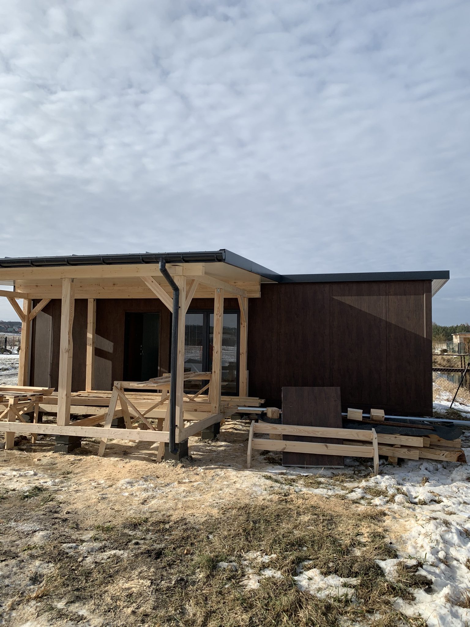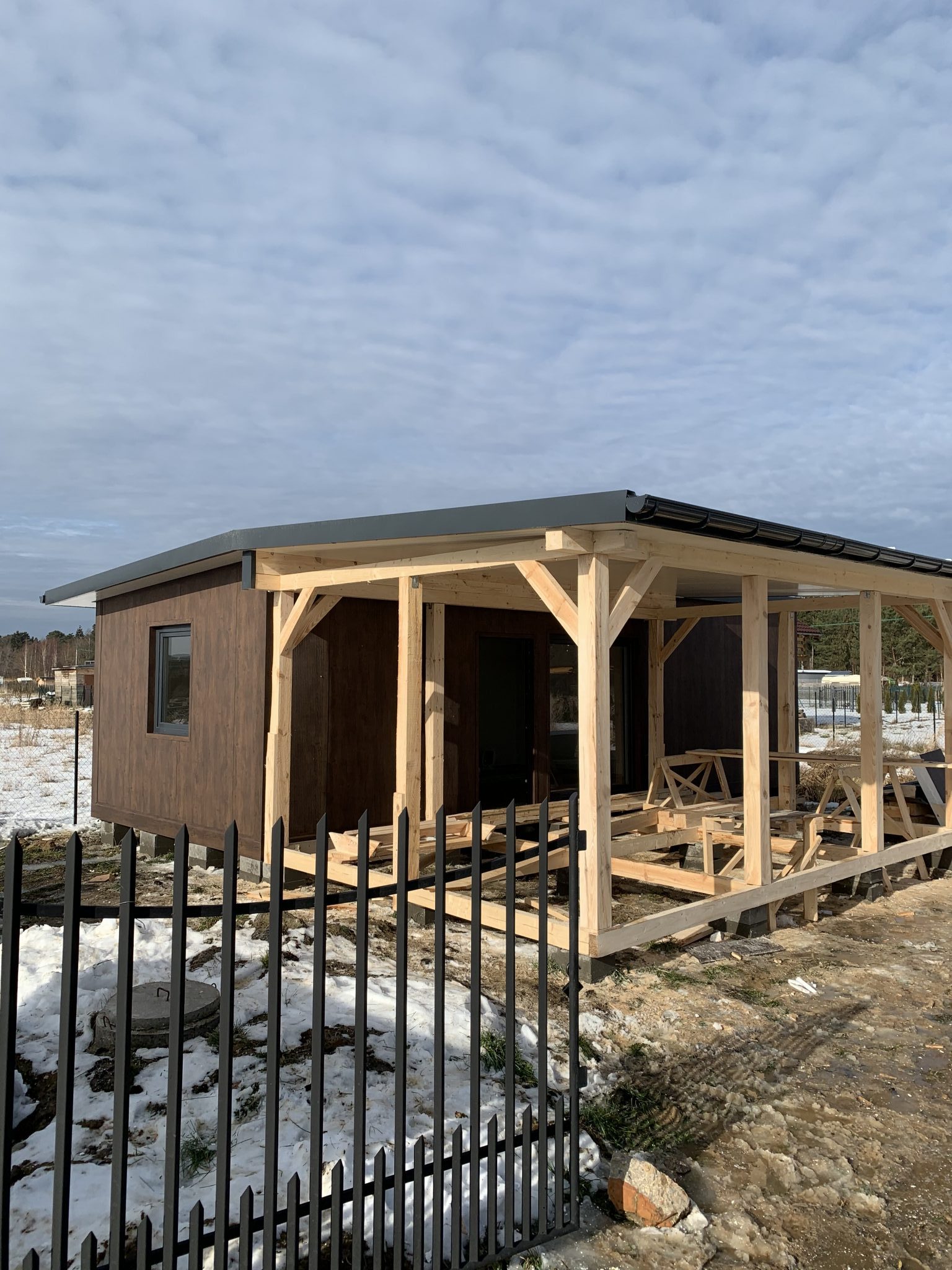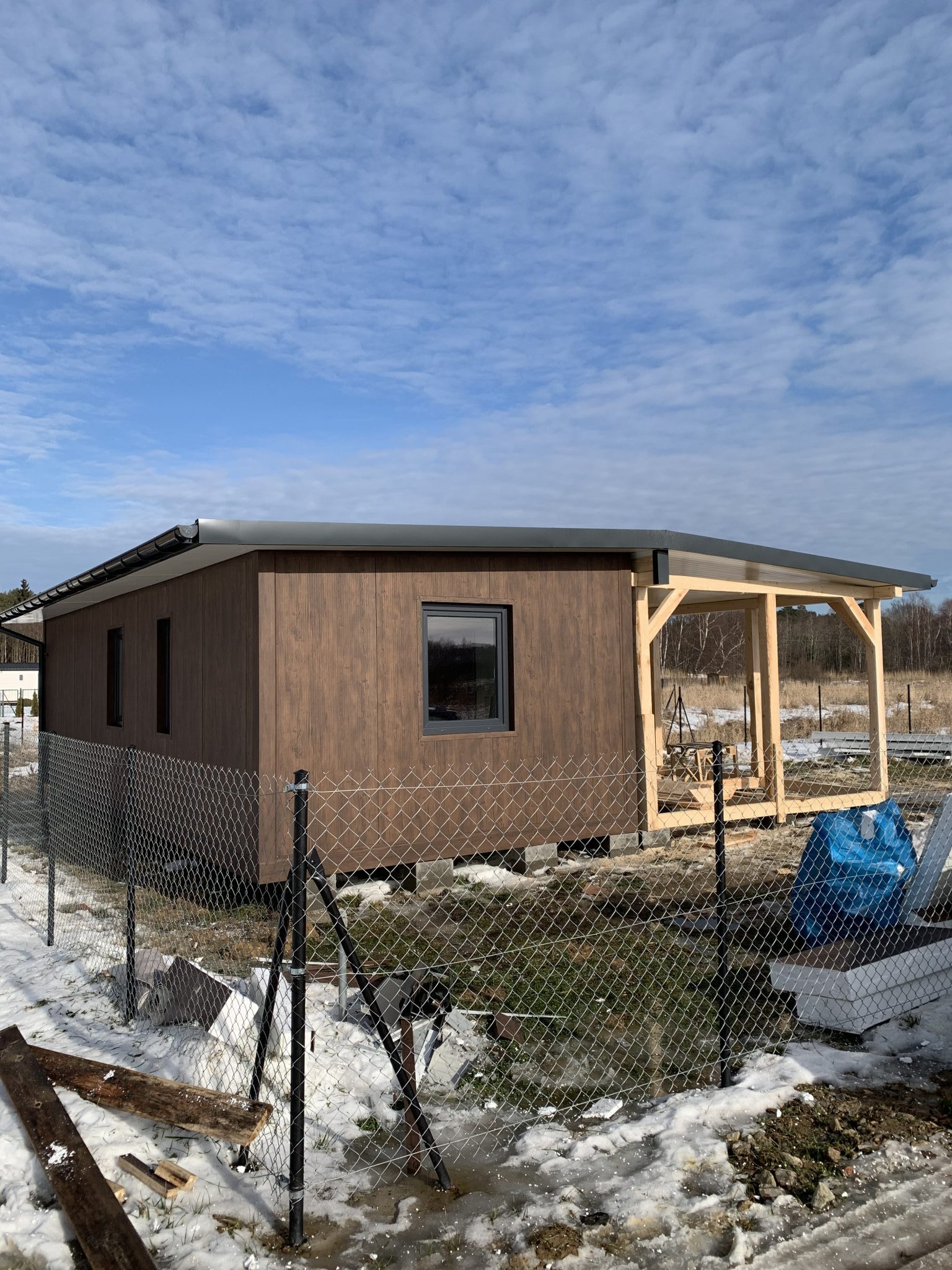 Płyta warstwowa ścienna 150mm styropian, od zewnątrz kolor palisander od wewnątrz 9010(biały)