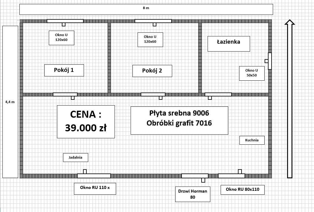 Płyta warstwowa ścienna 100mm styropian, od zewnątrz kolor 9006 ( srebny ) od wewnątrz 9010(biały)