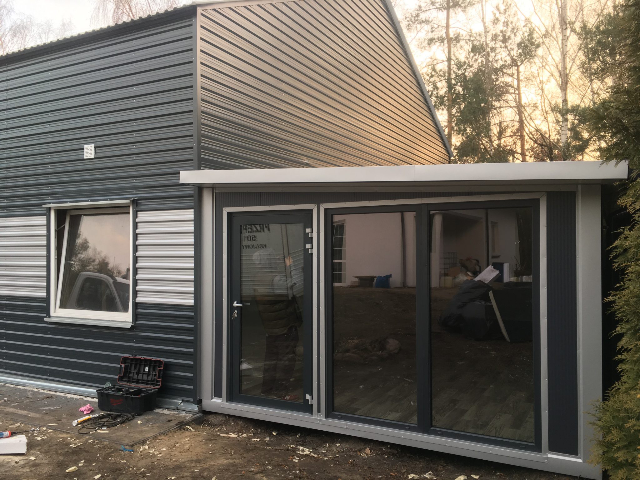 Płyta warstwowa ścienna 100mm styropian, od zewnątrz kolor 7016 ( antracyt ) od wewnątrz 9010(biały)